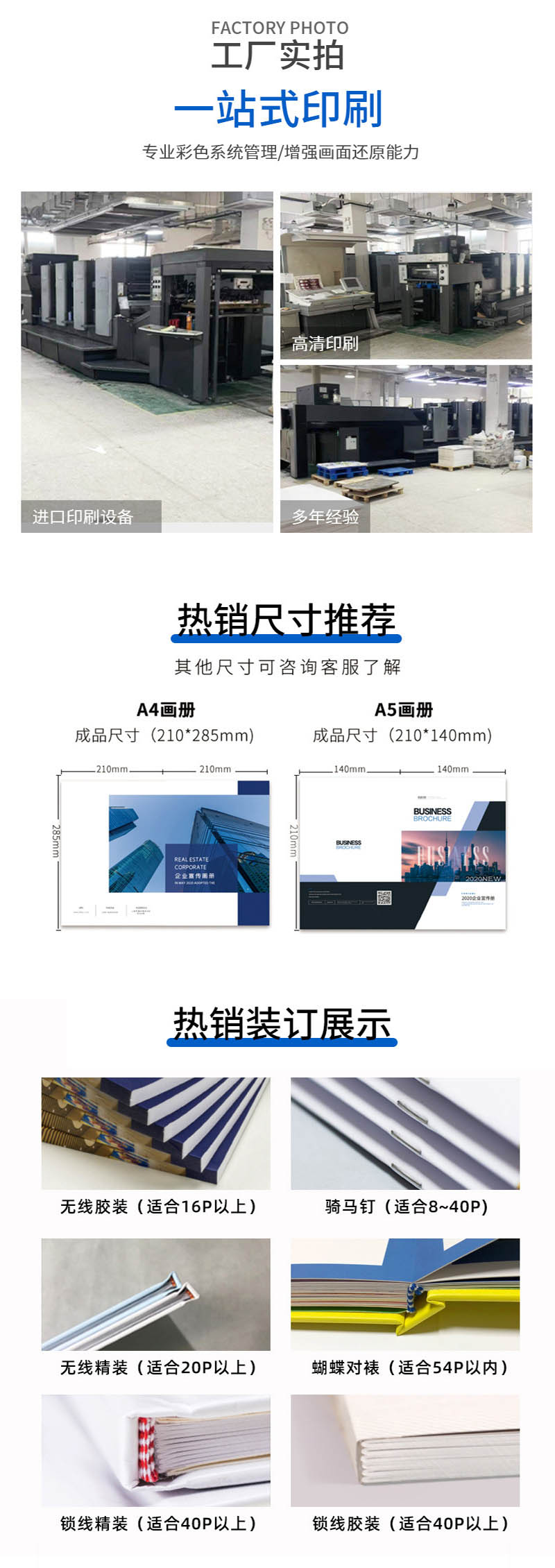 裝訂工藝:騎馬釘、無線膠裝、鎖線膠裝、蝴蝶裝、鎖線精裝、線圈等