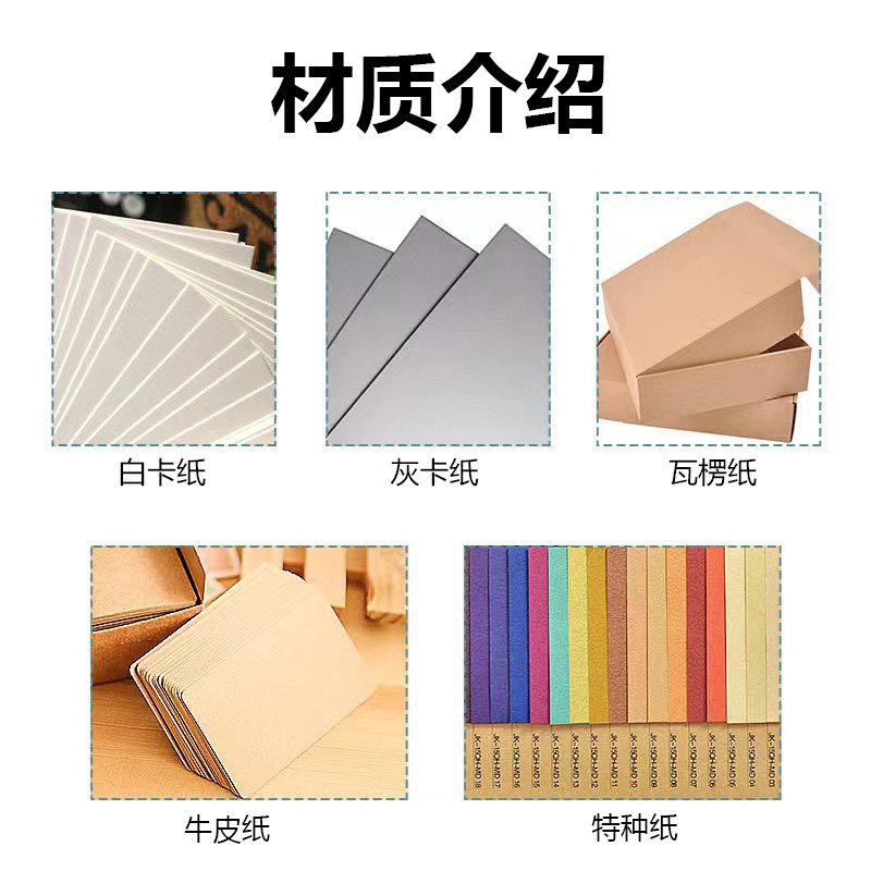 印刷紙張:銅版紙、雙膠紙、啞粉紙、珠光紙、其他藝術(shù)紙(藝術(shù)紙種類較多我們可以免費提供紙樣供您選擇)